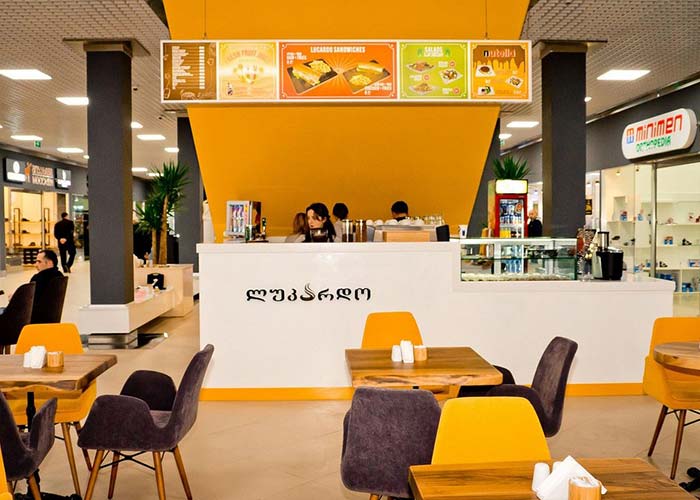 با اینکه باتومی مال یکی از بهترین مراکز خرید باتومی است ولی متاسفانه فود کورت ندارد که شاید بتوان آن را یکی از اصلیترین و مهمترین نقاط ضعف این مجموعه نامید. پس در نظر داشته باشید برای صرف نهار نمیتوانید روی این مرکز خرید حساب باز کنید؛ تنها در بعضی از طبقات کافههای کوچک و با منویی غذایی و نوشیدنی محدود دارد. نمونهای از این کافهها را در تصویر زیر مشاهده میکنید.